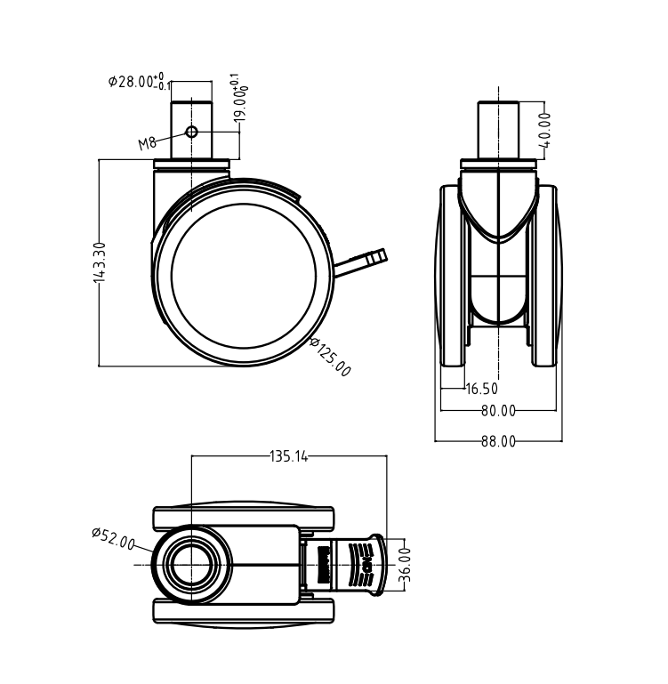 1685-12G-8 φ28插桿式雙片有剎腳輪